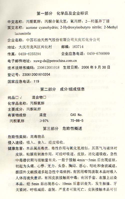 氰醇技術(shù)說明